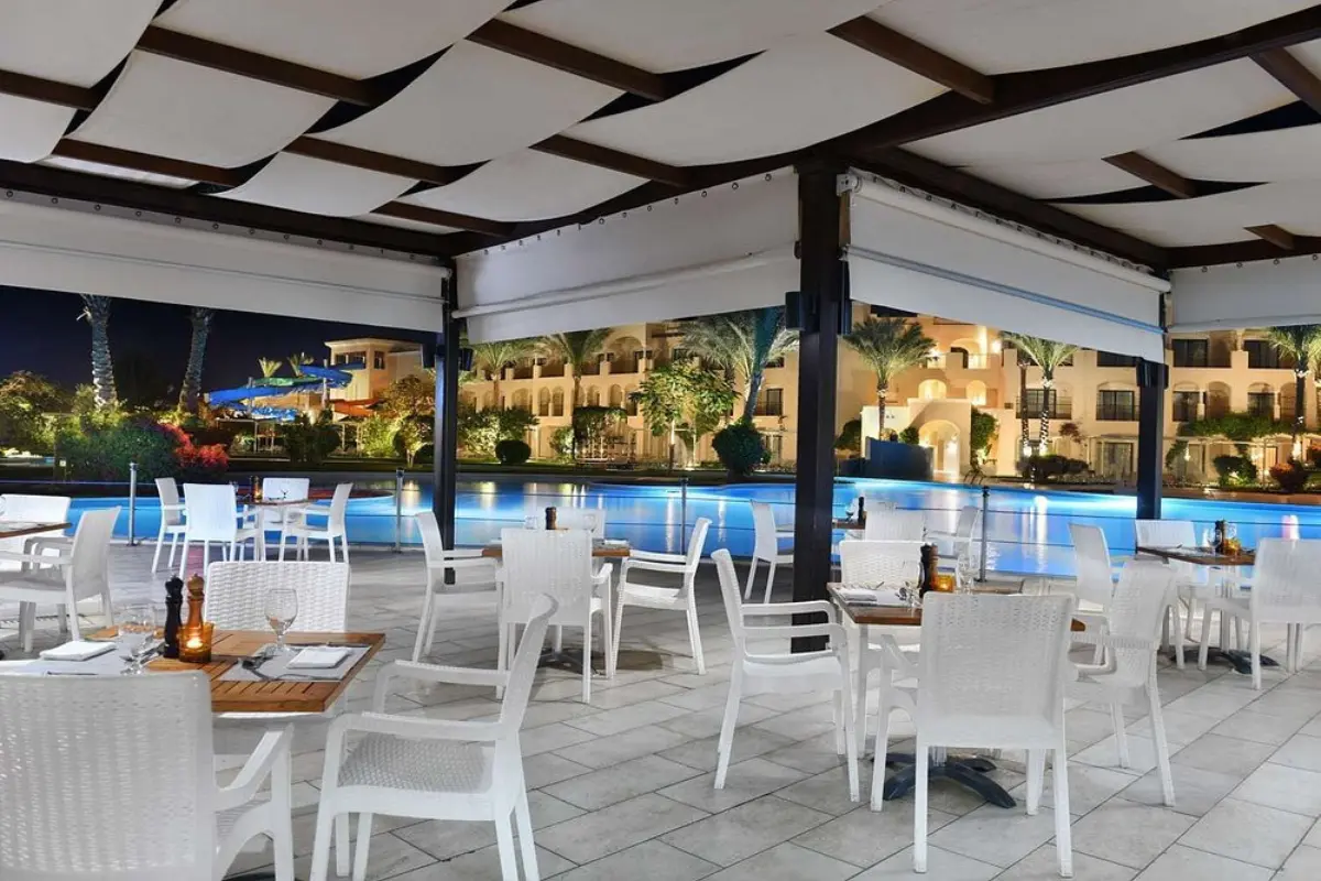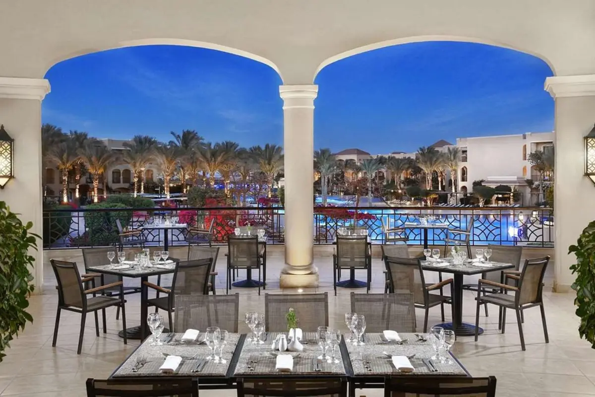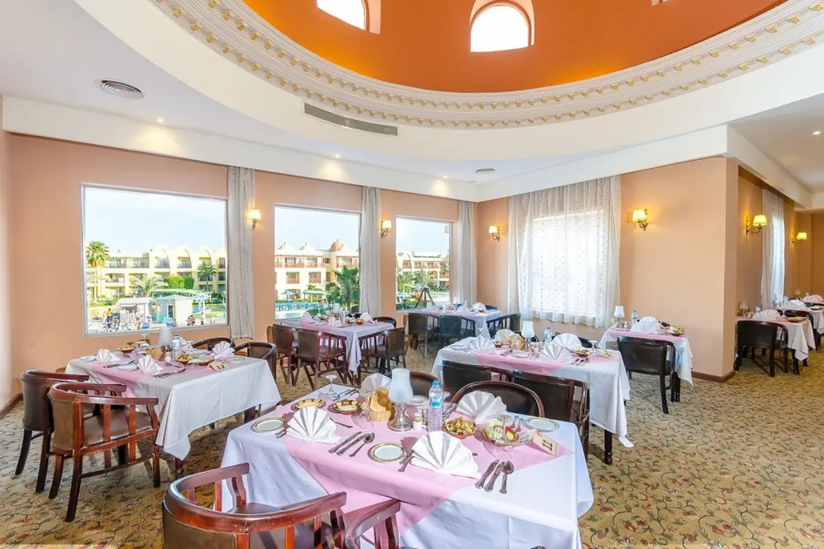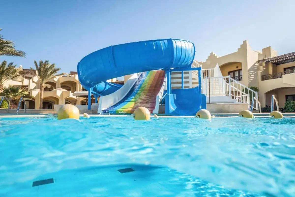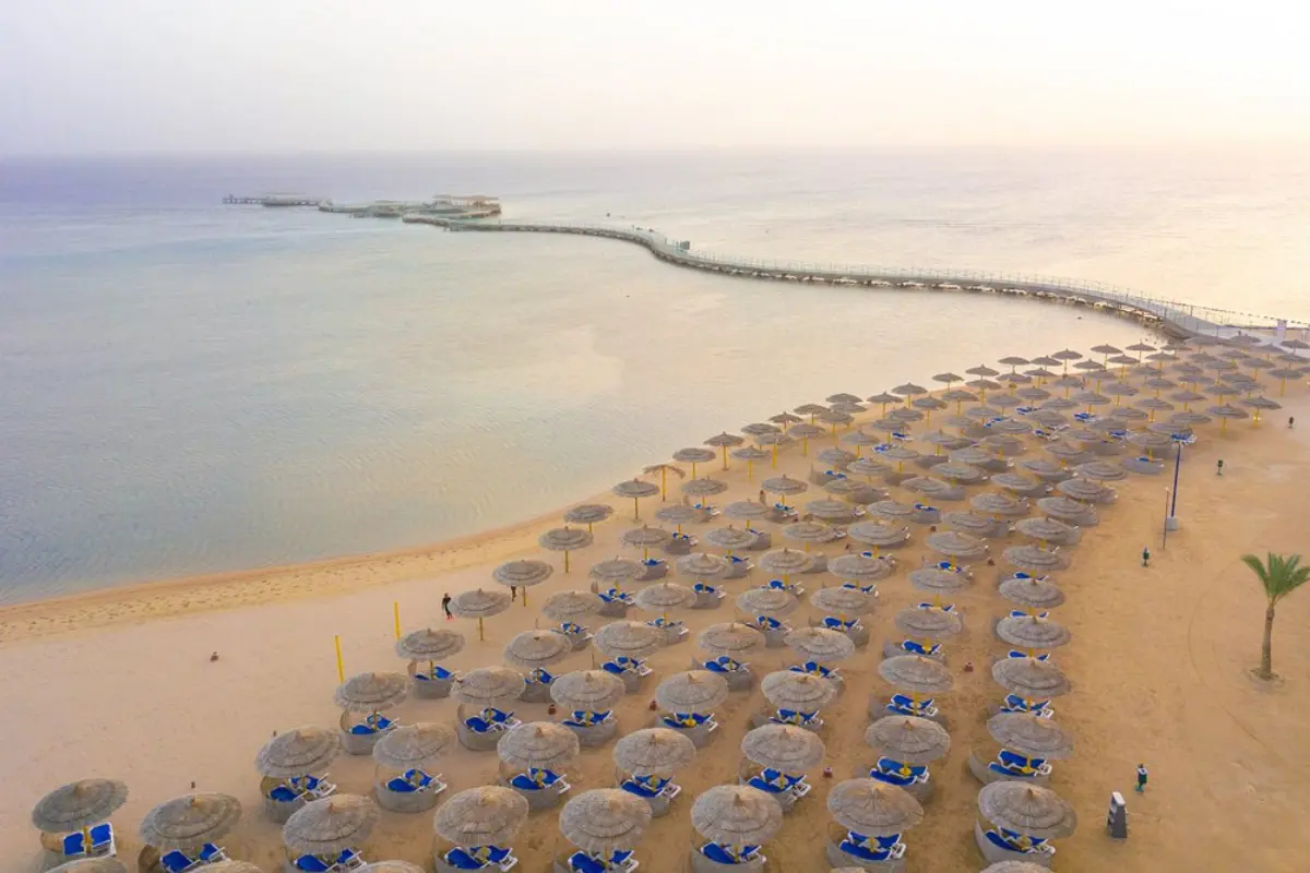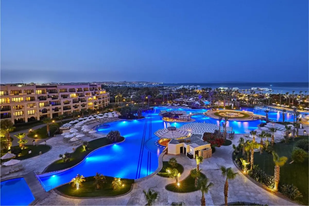 Located in the heart of Hurghadaβs touristic promenade, this 5-star resort offers spacious rooms, a private beach, a lazy river pool, and a spa. The service is impeccable, and the resort is perfect for those seeking ultimate comfort and pampering.