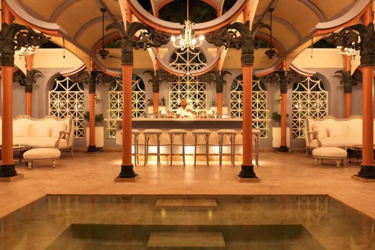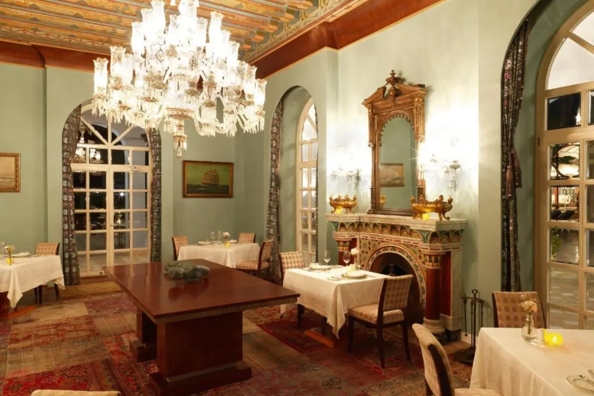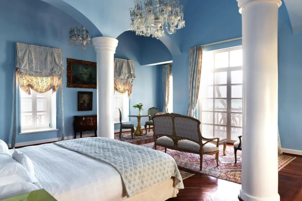 Tucked away in a quiet lagoon, this opulent mansion-style hotel offers a world of timeless elegance. Expect curated antiques, marble floors, and a peaceful adults-only ambiance.